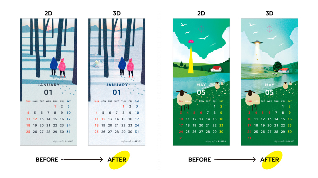 ここからは、「Blender」を活用した制作工程をご紹介します。今回は、2D×3Dの表現が際立つ1月とCGオブジェクトをふんだんに取り入れた5月のデザインをピックアップしました。