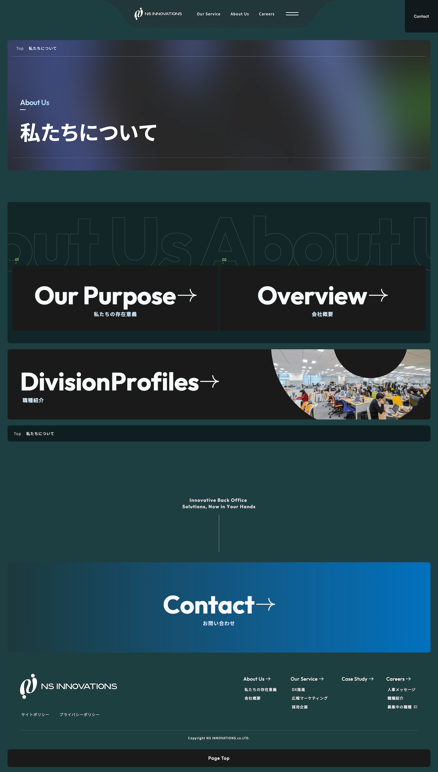採用に力を入れているという要望に対しては、「どんな人が活躍しているか」「どんな人に可能性があるか」が明確に伝わるように、文字量と画像のバランス、使用する画像、画像の配置、など視覚的要素を工夫し、ターゲットの心に響く情報設計をしました。