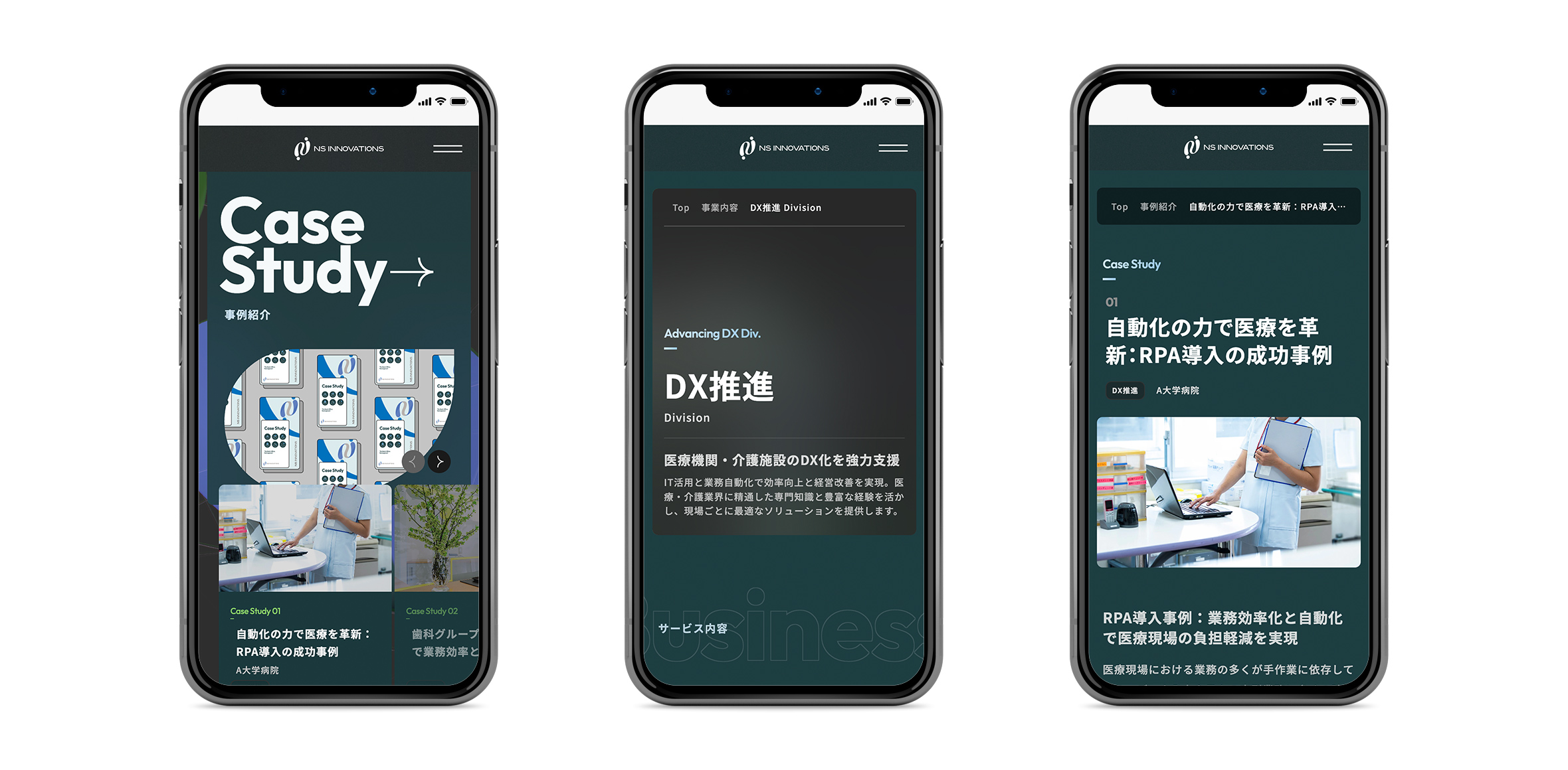 医療業界の人々に「医療のこと」ではなく、「業務面でのサポート」を想起してもらうことが目的だったため、医療を連想させるビジュアルを避けたいという明確な要望がありました。医療機器や病院のイメージは使用せず、プロフェッショナルかつ活気のある印象を与えるデザインを追求しました。